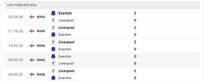 Phong độ gần đây Everton vs Liverpool
