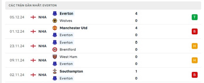 - Phong độ Everton