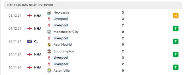 - Phong độ Liverpool