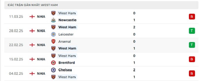 - Phong độ West Ham