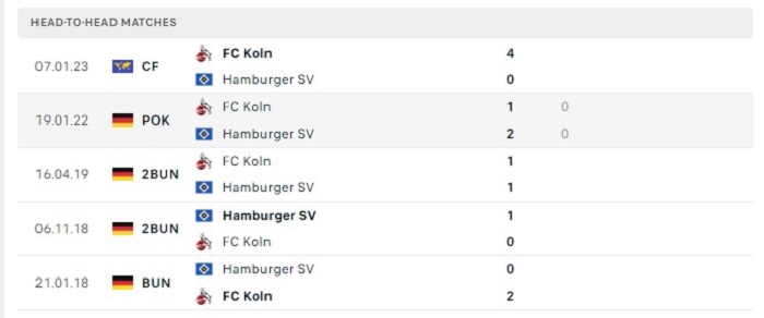 Lịch sử đối đầu của FC Koln vs Hamburger