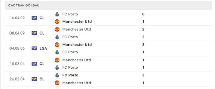 Lịch sử đối đầu của FC Porto vs Manchester United