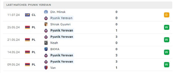 - Phong độ FC Pyunik