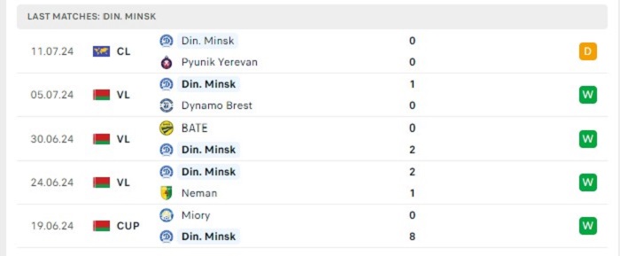 - Phong độ Dinamo Minsk
