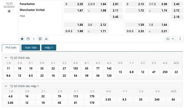 Soi kèo tỷ số Fenerbahce vs Manchester United