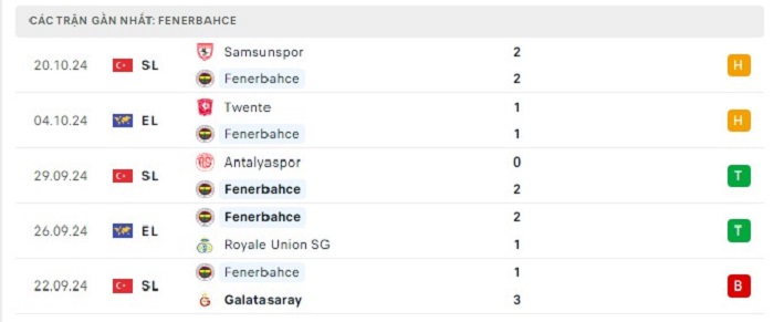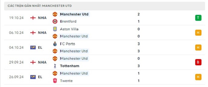 Bảng bóng đá trận đấu Fenerbahce vs Manchester United