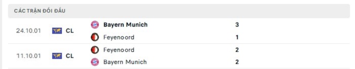Lịch sử đối đầu của Feyenoord vs Bayern Munich