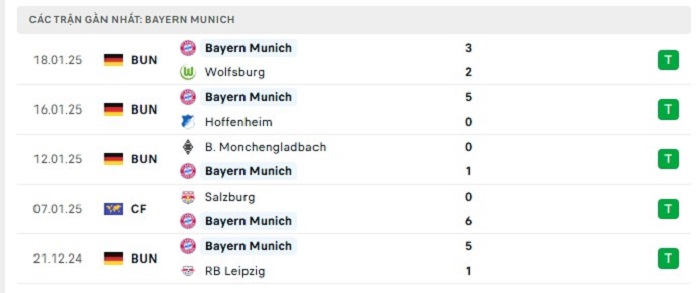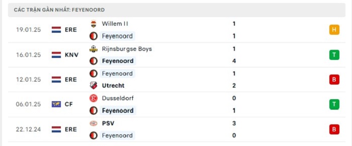 Phong độ gần đây Feyenoord vs Bayern Munich