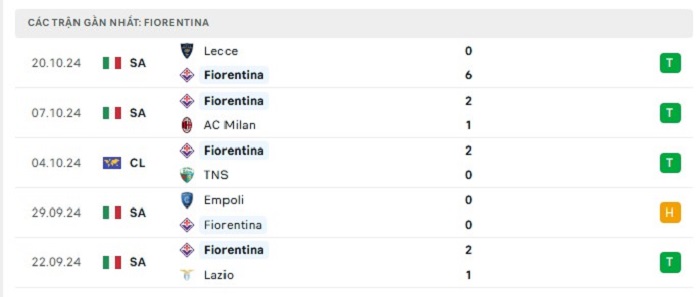 - Phong độ Fiorentina