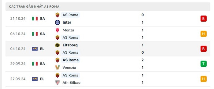 - Phong độ AS Roma