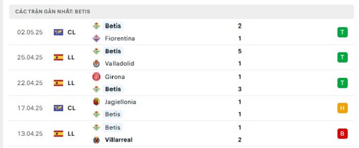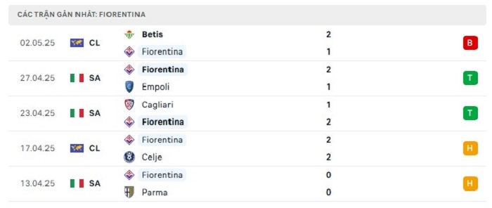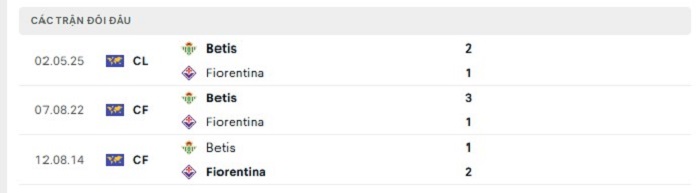 Lịch sử đối đầu của Fiorentina vs Real Betis