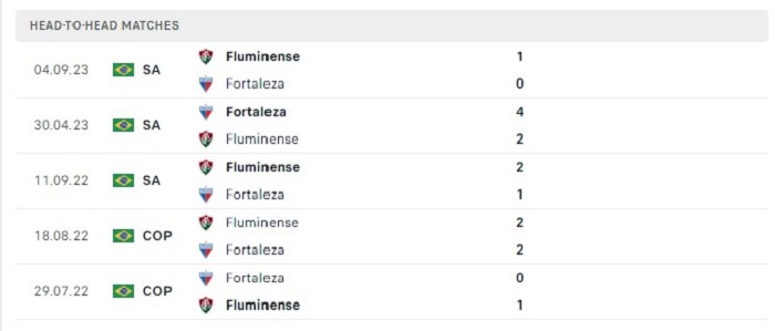 Lịch sử đối đầu của Fortaleza vs Fluminense