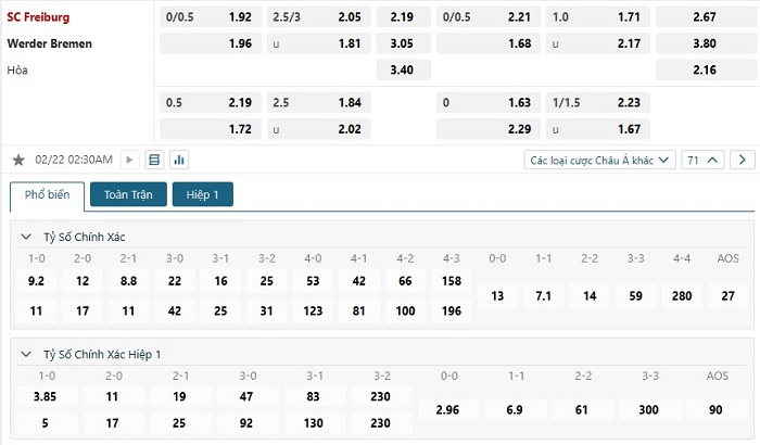 Soi kèo châu Á, kèo chấp Freiburg vs Werder Bremen