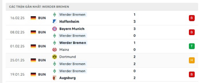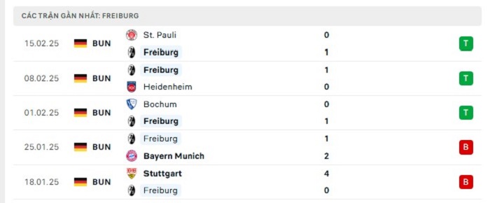 Bảng  bóng đá trận đấu Freiburg vs Werder Bremen
