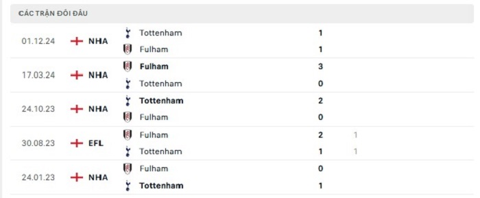 Bảng bóng đá trận đấu Fulham vs Tottenham