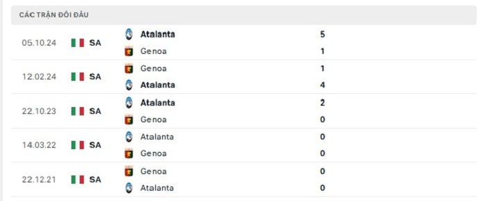 Lịch sử đối đầu của Genoa vs Atalanta