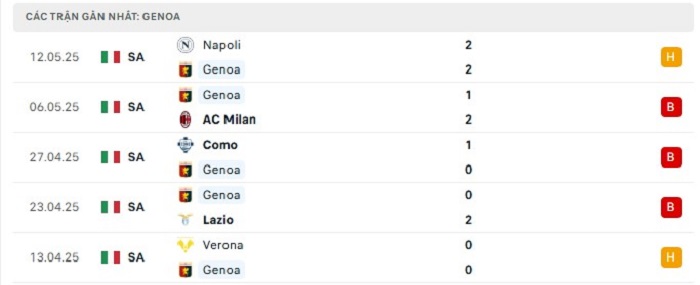 - Phong độ Genoa