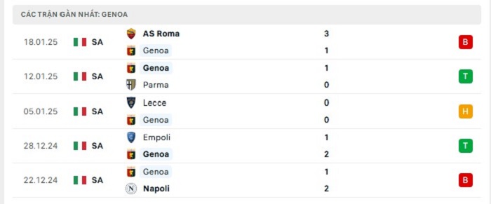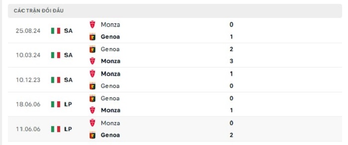 Bảng  bóng đá trận đấu Genoa vs Monza
