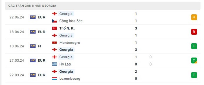 Phong độ gần đây Georgia vs Bồ Đào Nha
