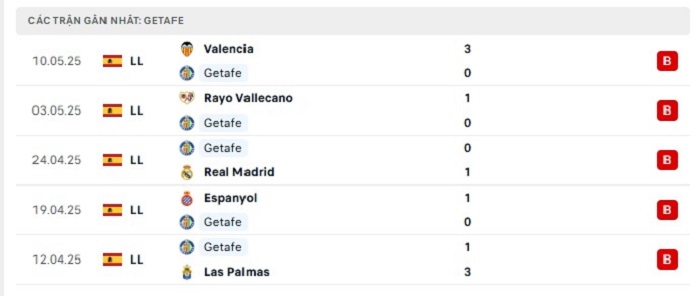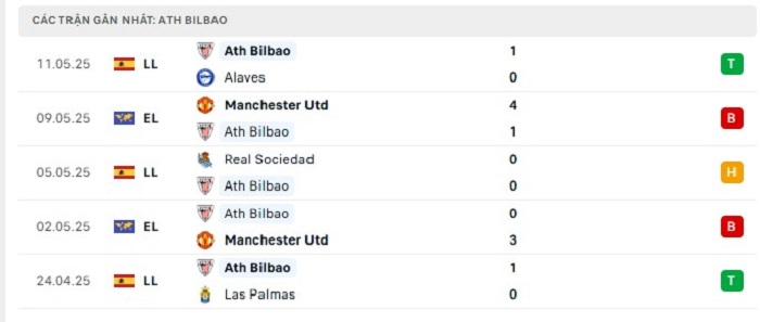 Phong độ gần đây Getafe vs Atheltic Bilbao