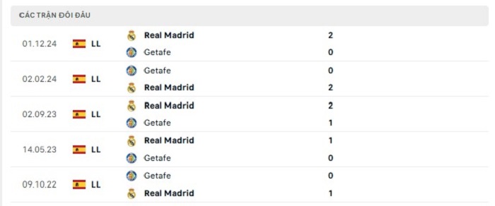 Lịch sử đối đầu của Getafe vs Real Madrid