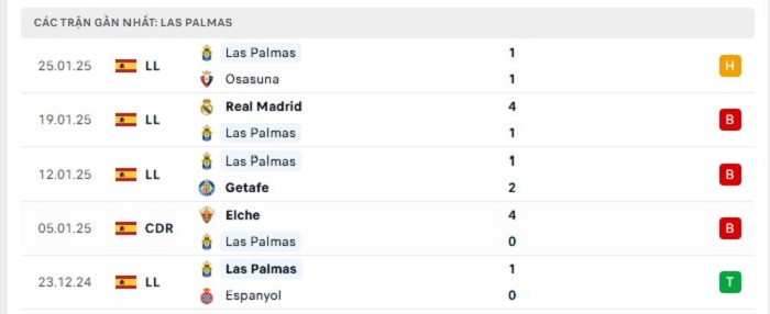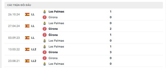Bảng  bóng đá trận đấu Girona vs Las Palmas