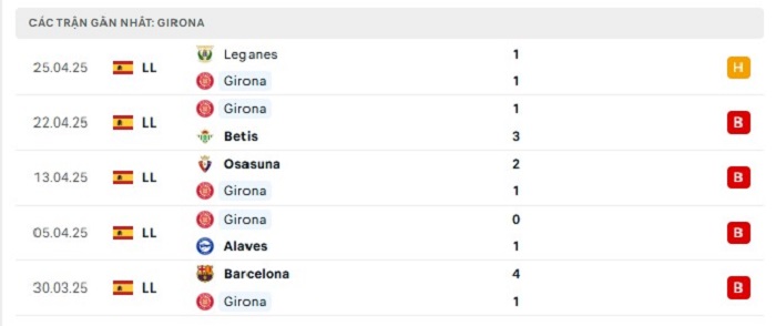 - Phong độ Girona