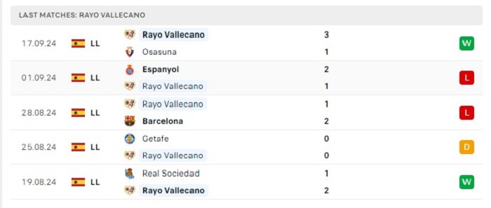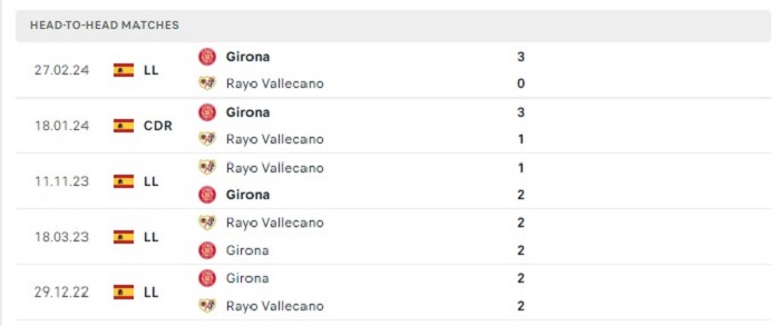 Lịch sử đối đầu của Girona vs Rayo Vallecano