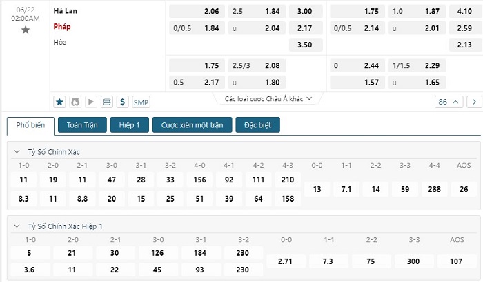 Soi kèo châu Á, kèo chấp Hà Lan vs Pháp