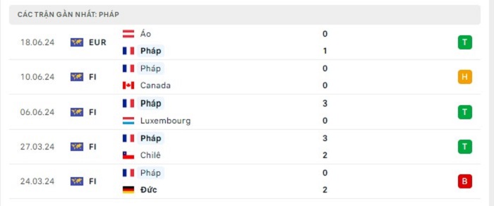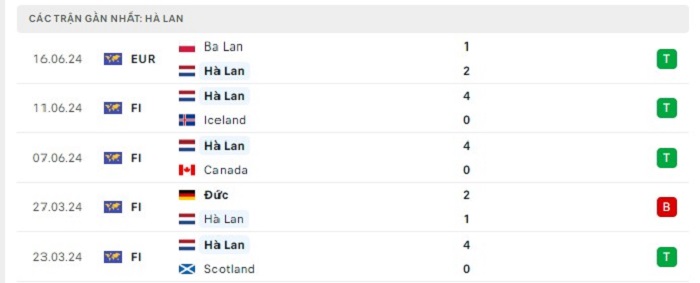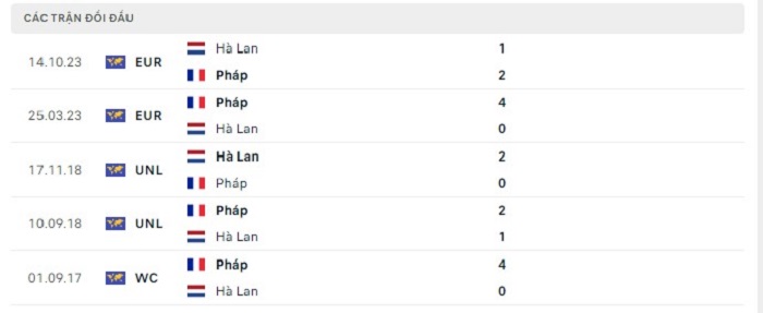 Phong độ gần đây Hà Lan vs Pháp