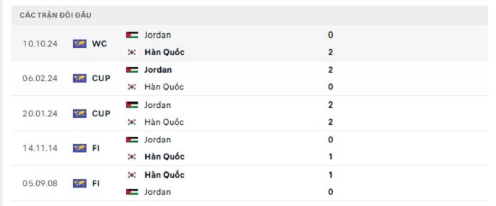 Lịch sử đối đầu của Hàn Quốc vs Jordan