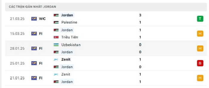 Bảng bóng đá trận đấu Hàn Quốc vs Jordan