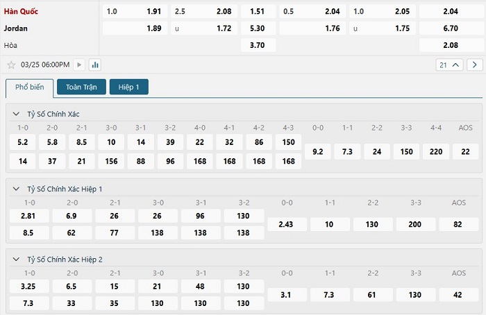 Soi kèo tỷ số Hàn Quốc vs Jordan