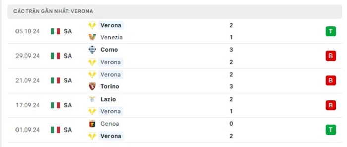 Bảng  bóng đá trận đấu Hellas Verona vs Monza