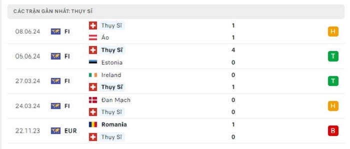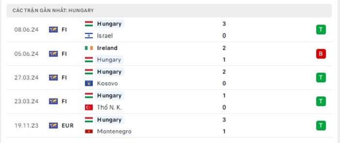 Phong độ gần đây Hungary vs Thụy Sĩ