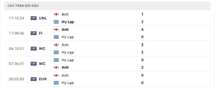 Lịch sử đối đầu của Hy Lạp vs Anh