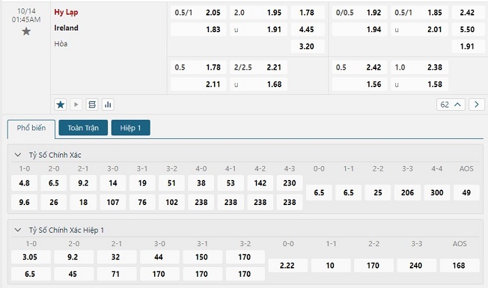Soi kèo châu Á, kèo chấp Hy Lạp vs Ireland