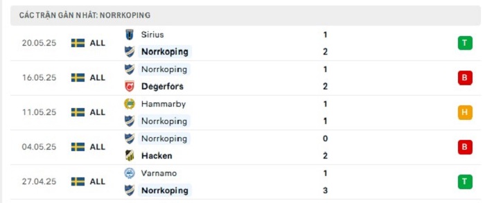 Phong độ gần đây IFK Norrkoping vs Mjallby
