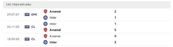 Lịch sử đối đầu của Inter Milan vs Arsenal
