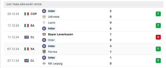 Bảng  bóng đá trận đấu Inter Milan vs Como