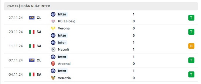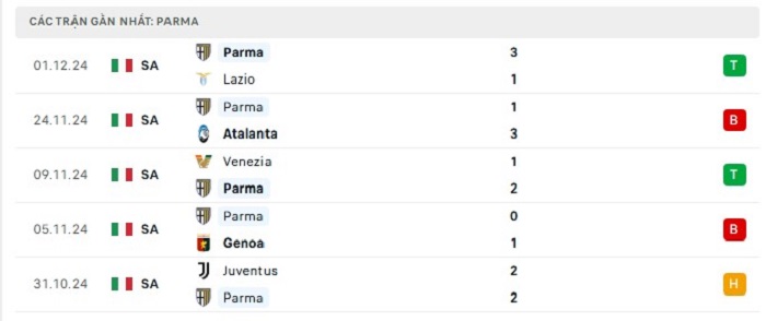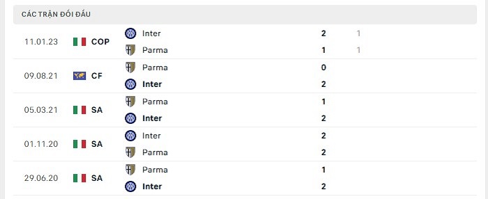 Bảng  bóng đá trận đấu Inter Milan vs Parma