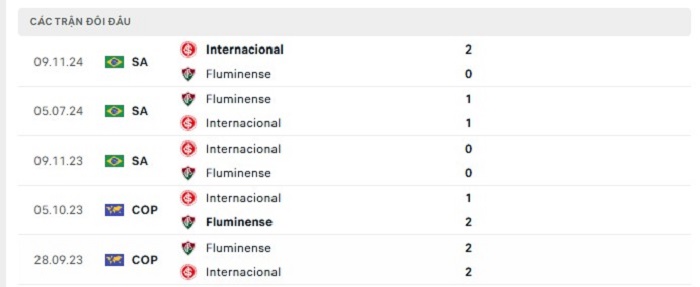 Thành tích đối đầu trong những năm qua giữa Internacional và Fluminense có thể thấy được tỷ lệ ghi bàn của hai đội không cao, cụ thể là 3 lần gặp nhau liên tiếp gần đây của hai đội cũng chỉ xuất hiện được từ 2 bàn thắng ghi được trở xuống. Mùa giải này có thể thấy được hàng công của Internacional và Fluminense cũng đều chưa thể hiện được sức mạnh ghi bàn vốn có của mình trong những năm trước đây, do vậy mà khó có thể kỳ vọng tới một trận đấu bùng nổ về mặt tỷ số ghi được cho cả hai đội.