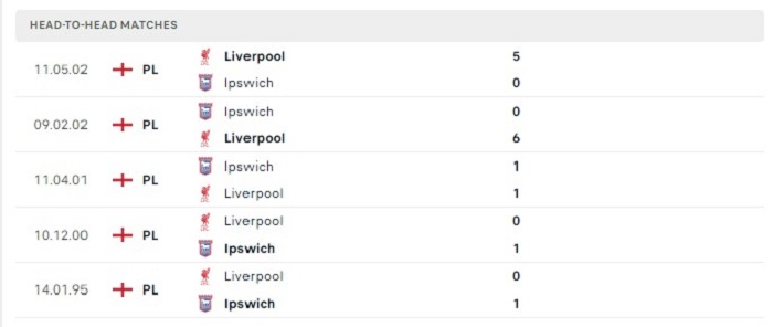 Trong 2 lần gặp nhau gần đây nhất Ipswich đều phải nhận thất bại trước Liverpool và đó đều là những thất bại rất thảm bại, dù thời gian diễn ra trong quá khứ cũng đã rất lâu nhưng cũng đủ đã cho thấy được trình độ và thực lực rất vượt trội của đối thủ so với họ. Sau nhiều năm vắng mặt thì mục tiêu của Ipswich ở giải đấu là việc cạnh tranh tấm vé trụ hạng nhưng trước những cái tên lớn của giải đấu như Liverpool thì tinsoikeo nhận định việc Ipswich phải nhận một thất bại theo mốc kèo châu Âu cũng là điều khó mà tránh khỏi.