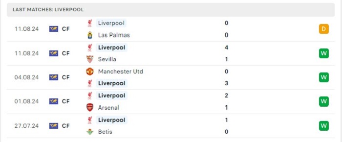 - Phong độ Liverpool