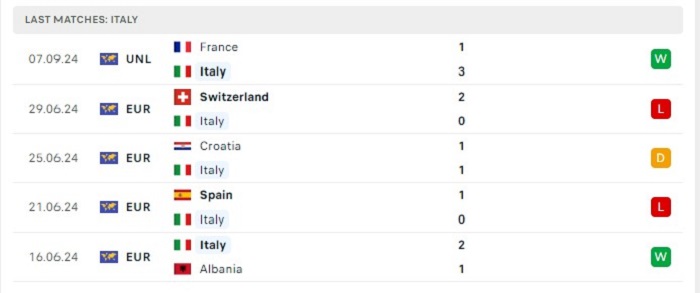 Quá khứ gần như đang đứng hoàn toàn về phía Italia trong những lần gặp nhau của hai đội, thật vậy bởi tại 5 lần gặp nhau gần đây Israel còn chưa biết tới mùi thắng lợi trước đối thủ này, thành tích tốt nhất mà Israel có được chỉ là 1 trận hoà trong khi có tới 4 thất bại theo mốc kèo châu Âu của trận đấu, do đó mà với thực lực hiện tại việc Italia tiếp tục có được một chiến thắng theo mốc kèo châu Âu cũng là điều không phải quá khó khăn với họ.