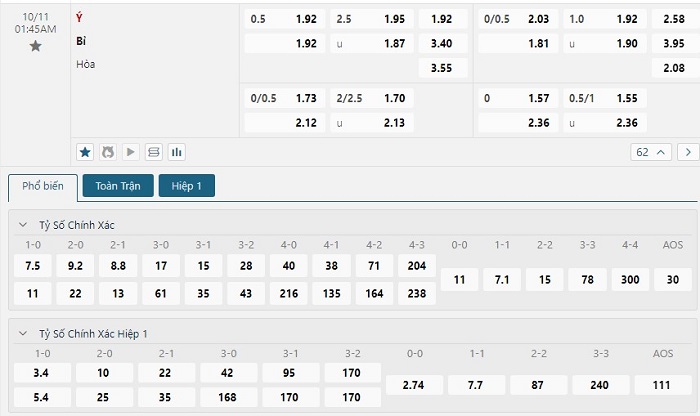 Soi kèo châu Á, kèo chấp Italia vs Bỉ