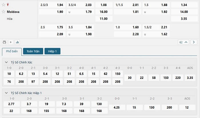 Soi kèo châu Á, kèo chấp Italia vs Moldova