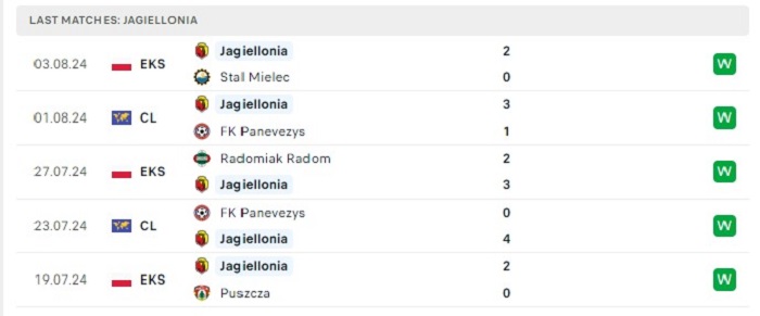 - Phong độ Jagiellonia Bialystok