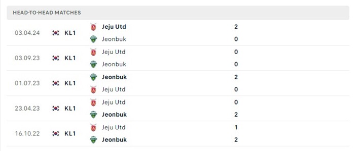 Lịch sử đối đầu của Jeonbuk vs Jeju United