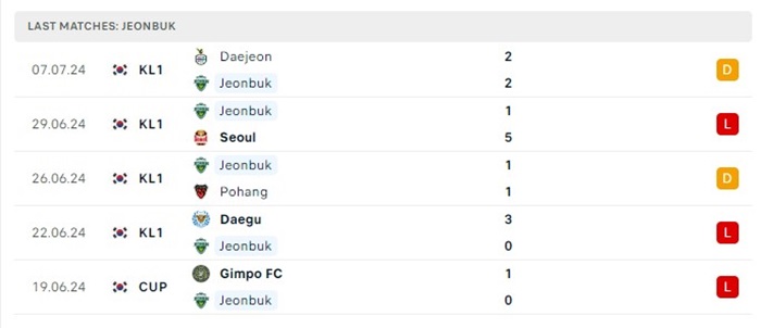 - Phong độ Jeonbuk